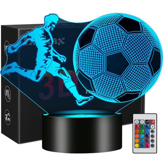 Linkax 3D Football Night Light for Boys – 16 Color Changing LED Lamp, Birthday Gifts for Kids Aged 6-10, Bedroom Decor for Boys & Girls