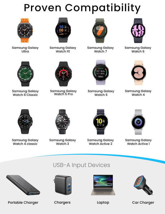 Sinoacc Charger for Samsung Galaxy Watch 7/Ultra/6/6 Classic/5/5 Pro/4/4 Classic/3/Active 2/Active 1 Galaxy Watch Charger 3.3Ft USB Magnetic Wireless Charging Cable Cord for Samsung Galaxy Watch