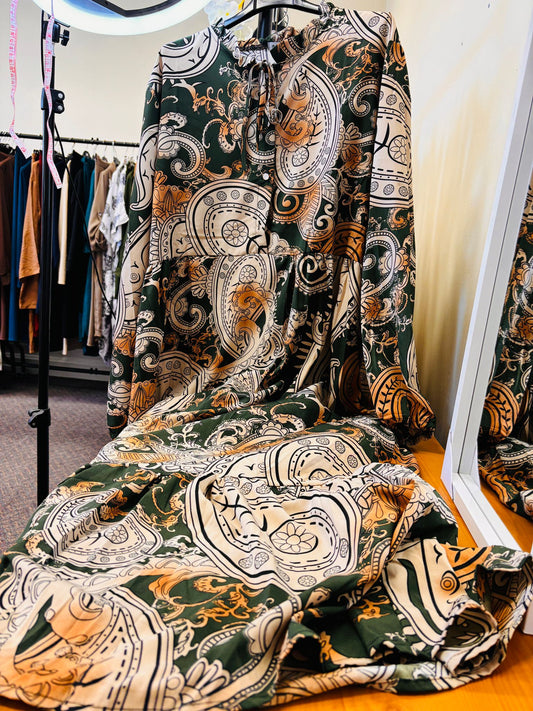 Summer Print Long Sleeve & Long Dress with New Fashion Style