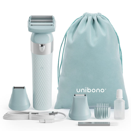 Unibono Lady Shaver Trimmer Kit – Cordless Rechargeable Electric Razor for Women, Dual Foil Painless Wet & Dry Body Hair Removal with LED Light, Ideal for Pubic and Legs