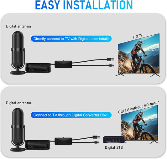 Diswoe Indoor TV Aerial with Signal Booster – High Gain Freeview Antenna for Smart TV, 4K, 1080P HDTV, VHF/UHF, DAB Radio – Includes 16.4 Ft Coax Cable