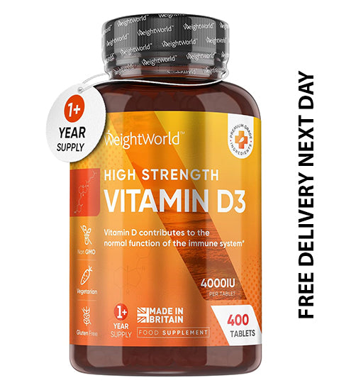 Vitamin D3 4000 IU – High Strength 400 Tablets (1+ Year Supply) – Vegetarian Immune Support – Daily Cholecalciferol Vitamin D Supplement – Made in UK