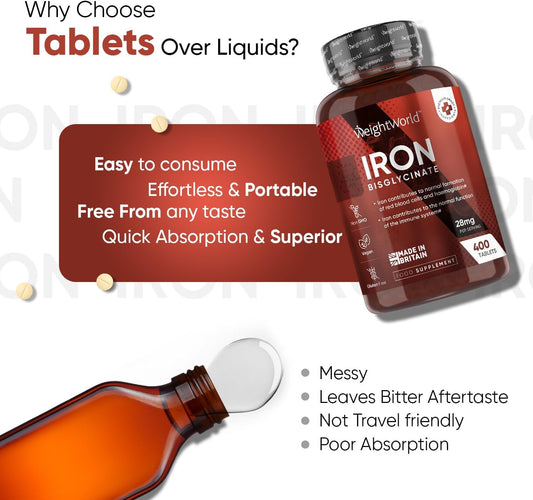 Gentle Iron Tablets 28 mg – High Strength Vegan Iron Bisglycinate – 400 Tablets (6+ Months Supply) – Energy & Fatigue Support – High Absorption Iron Supplement for Women & Men