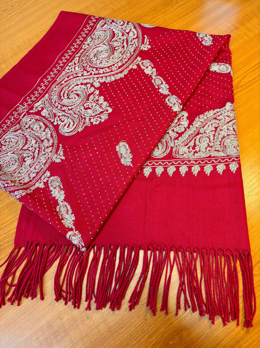 Red Embroidered Shawl | scarf Elegant Wedding Wrap | Bright Stole for Women