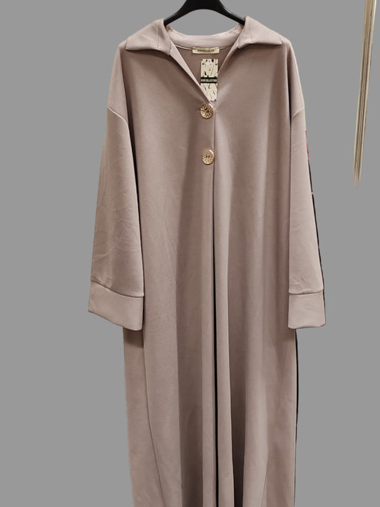 Modest Taupe Long Dress & Abaya | Elegant Maxi with Collar for winter