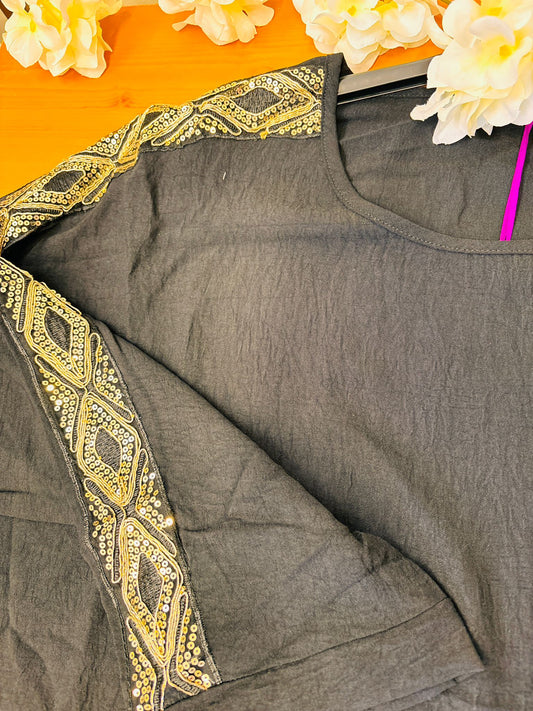 Elegant Black Colour Full Sleeve Co-Ord Set with Gold Embellished Detailing