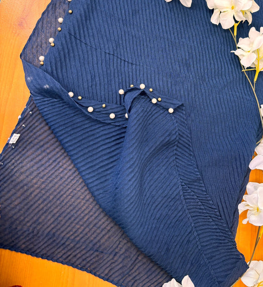 Premium Royal Blue Super Soft Crêpe Cotton Hijab with Pearl Detailing – Navy Blue