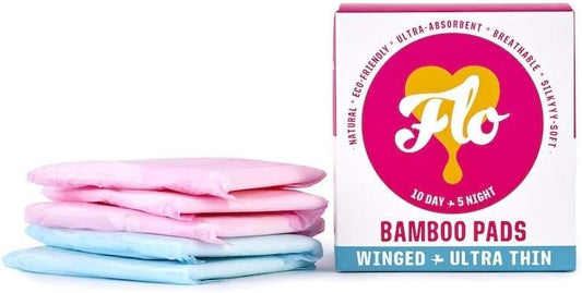 Bamboo Sanitary Period Pads Wings FLO Organic Soft Silky Ultra-Absorbent & Biodegradable Period Pads - Combo Pack 10 Day & 5 Night Pads