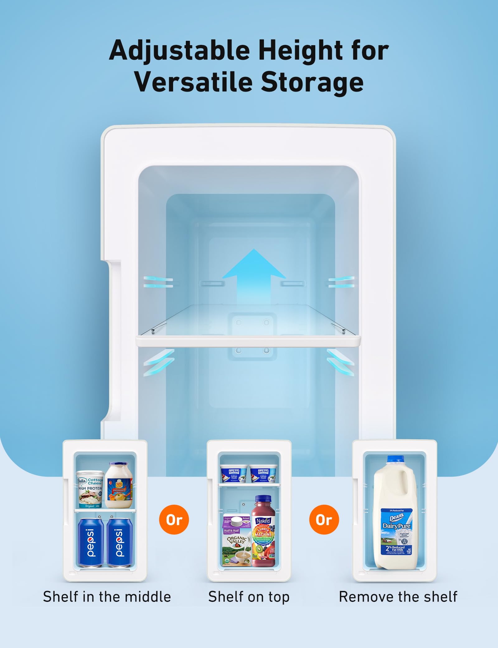 Note: This fridge cannot freeze items and requires continuous power to maintain cooling. Frequent door openings may reduce efficiency.