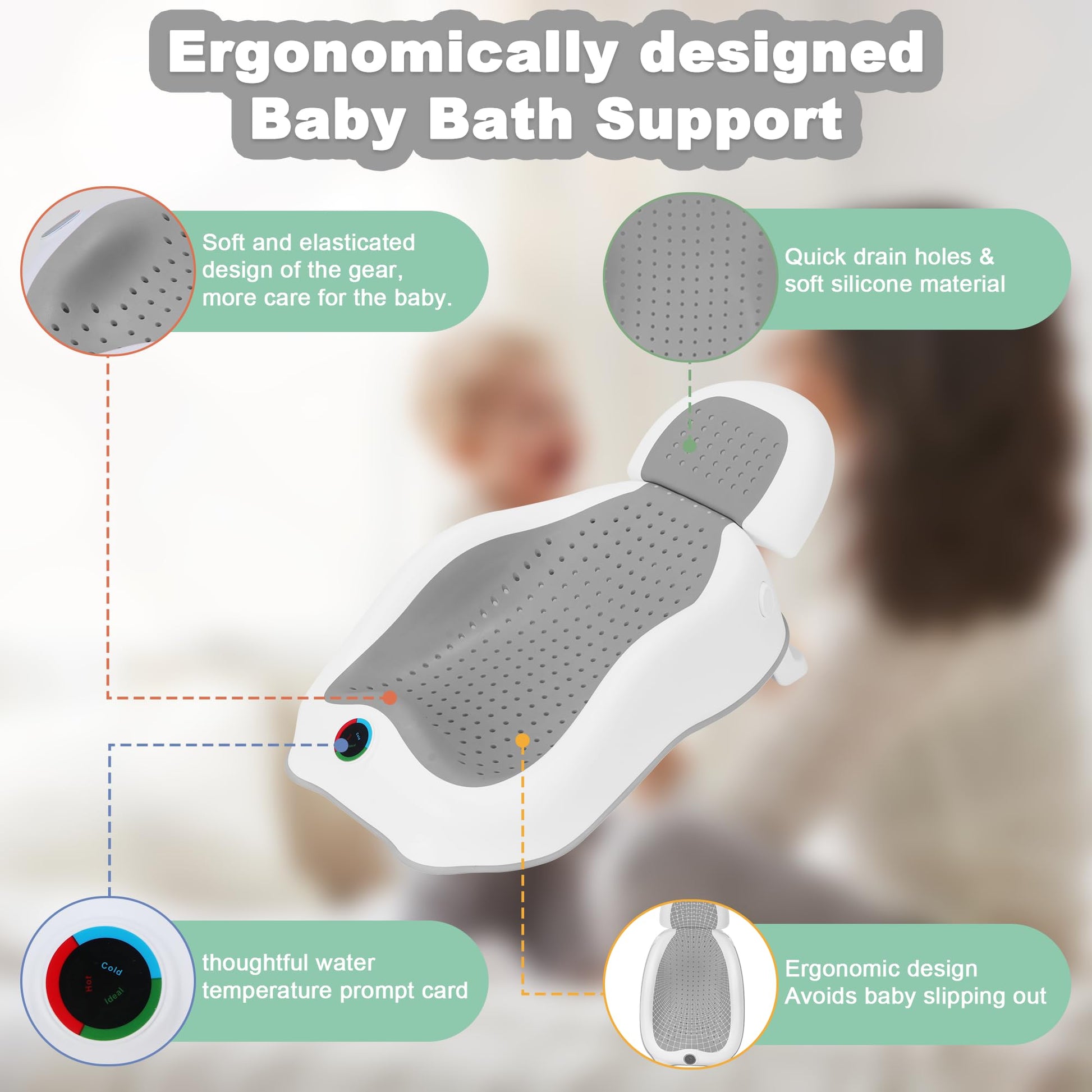 - Keywords: Baby bath support, baby essentials, newborn must-haves, infant bath seat, collapsible baby bathtub, baby lounger, baby bath cushion, travel baby bathtub, newborn bathtub, baby bath safety, baby bath thermometer.