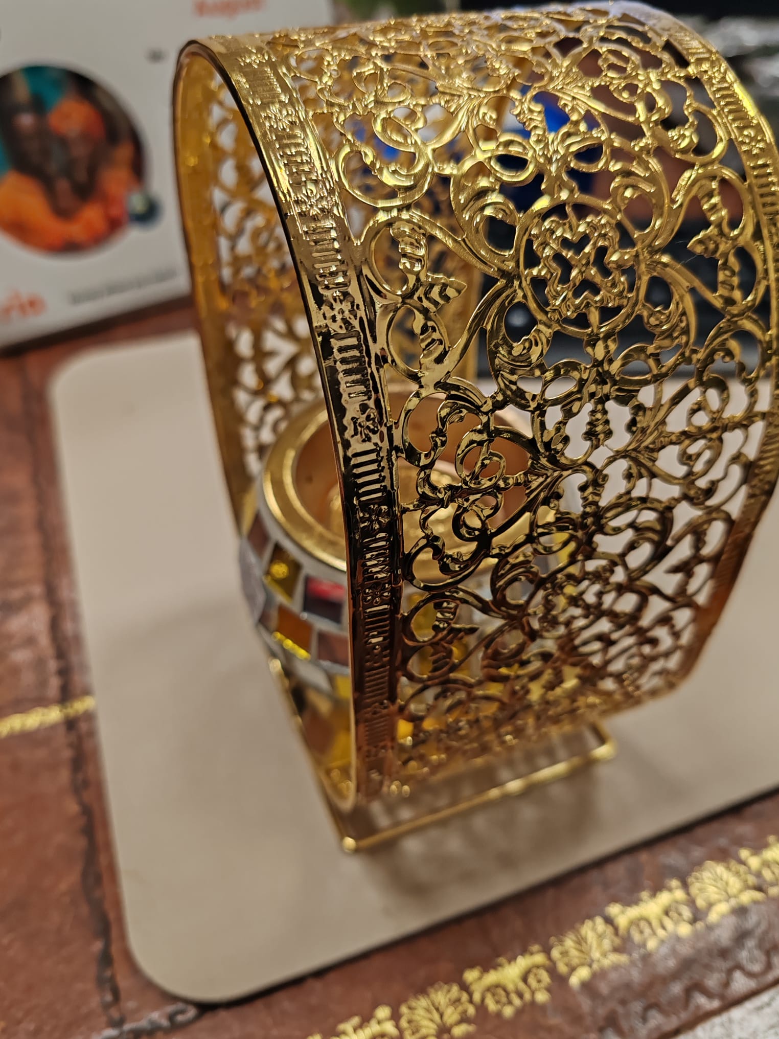 Bukhoor Burner Gold Mosaic Glass Tealight Candle Holder with Ornate Frame.