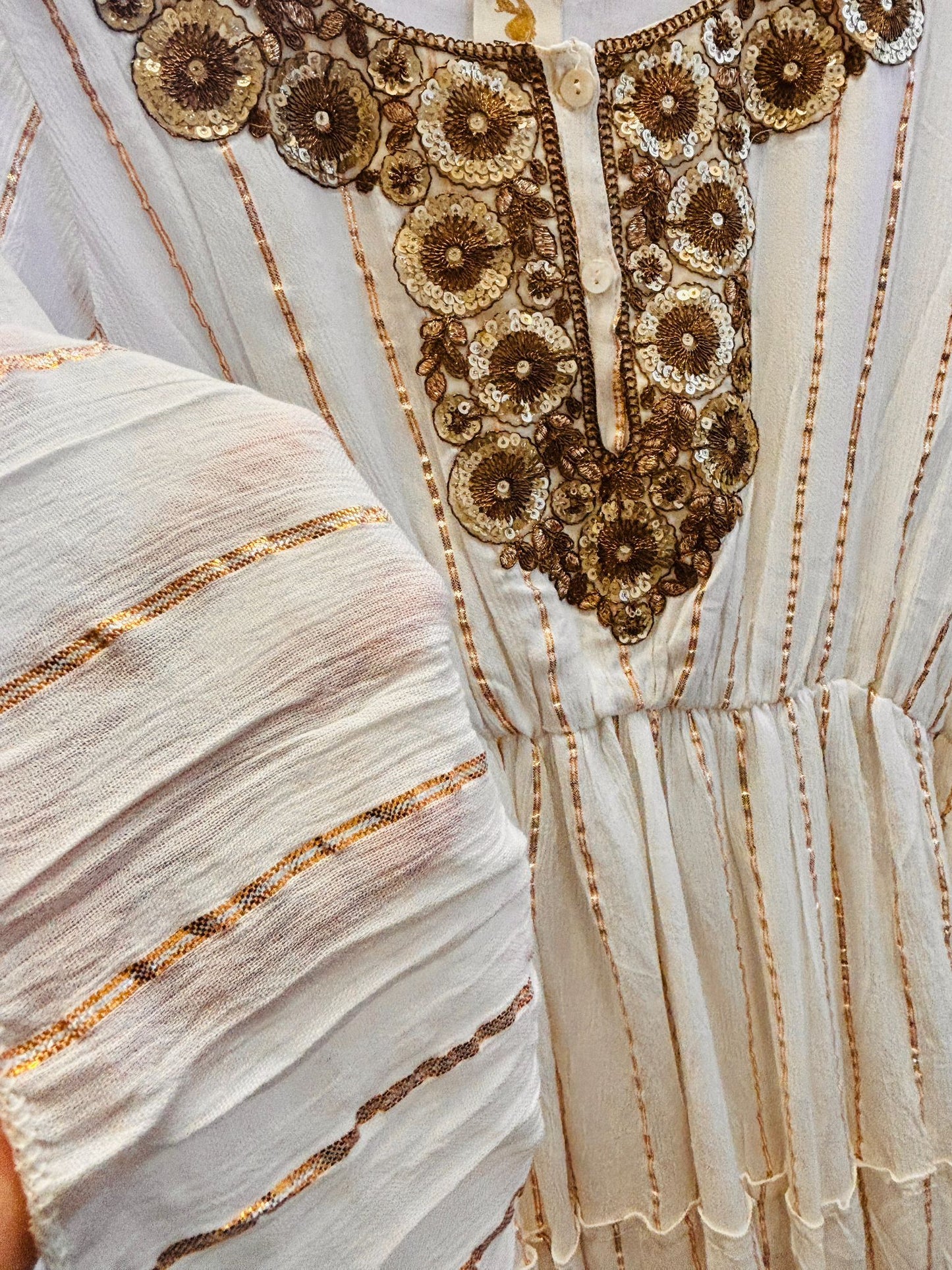 Cornsilk White Cotton Long Dress – Bust 44” | Length 50” | Elastic Waist | Long Dress