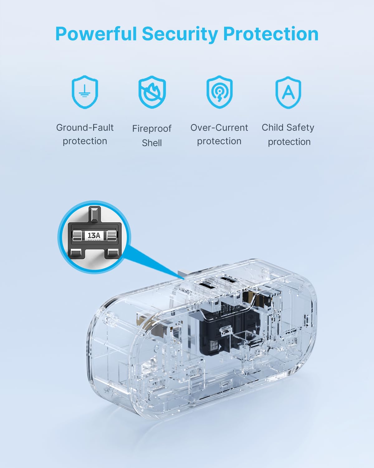 - Includes a 13A fuse, grounding plug, and child-safety design to protect you and your family.