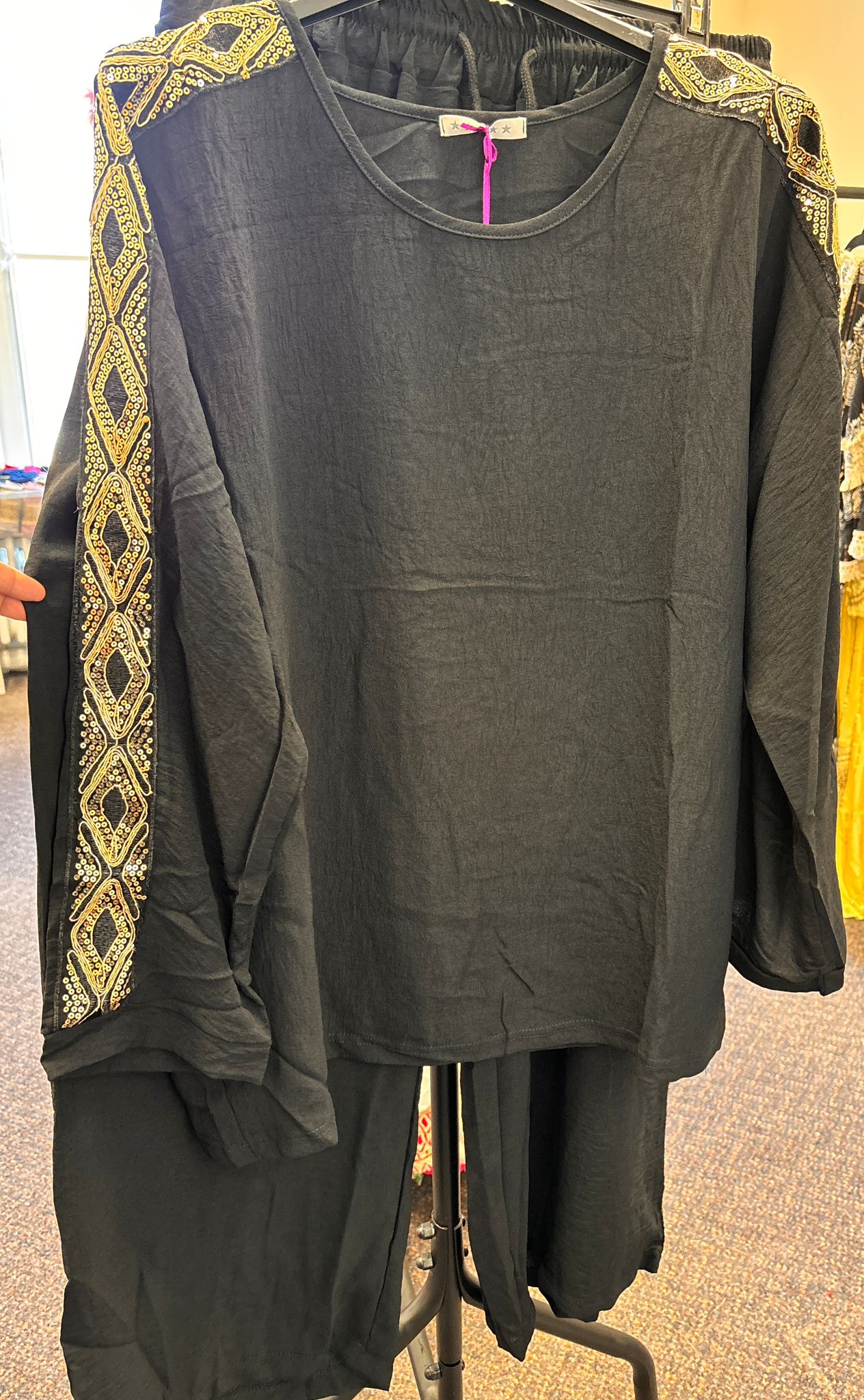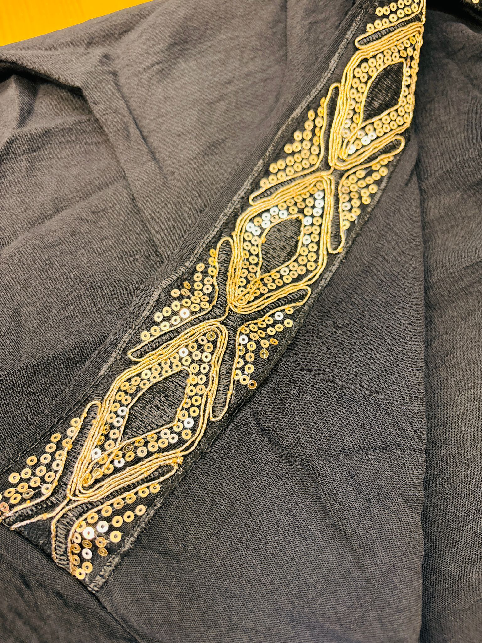 Elegant Black Full Sleeve Co-Ord Set with Gold Embellishments