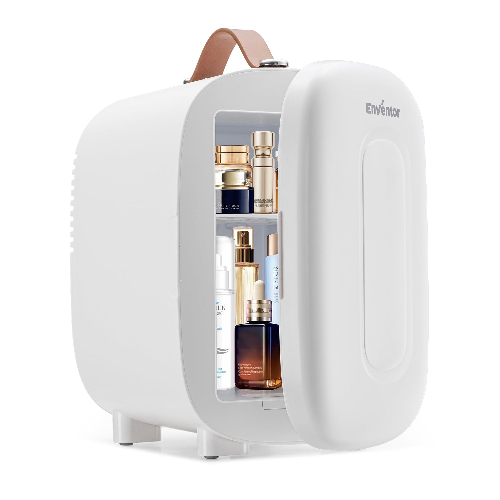 - 4L Mini Fridge – Compact yet spacious, this mini fridge holds up to 6 x 330ml cans. Internal dimensions: H: 20.2 cm x W: 13.5 cm x D: 15.1 cm. Includes removable shelves and a door basket for organised storage of drinks, snacks, breast milk, or skincare products.