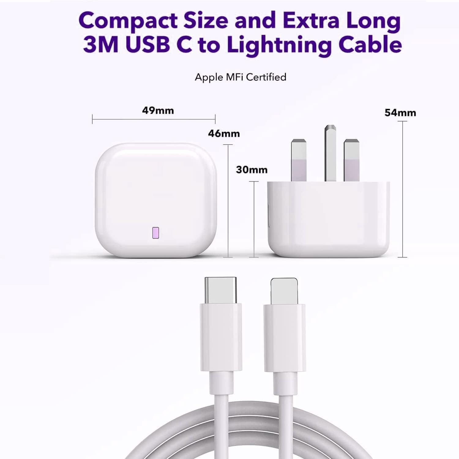 iPhone Fast Charger, 20W USB C Fast Charger Plug with iPhone Charger Cable 1M, iPhone Charger Plug and Cable for iPhone 14/14 Mini/ 14 Pro/ 14 Pro Max/ 13/12/ 11/ SE/ 8/7, Pad