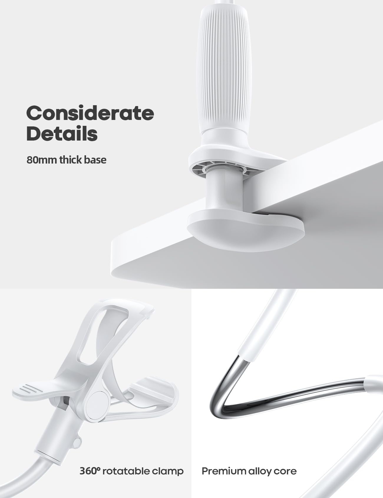 - Highly Adaptable: Clamps securely onto surfaces such as desks, tables, headboards, and countertops.