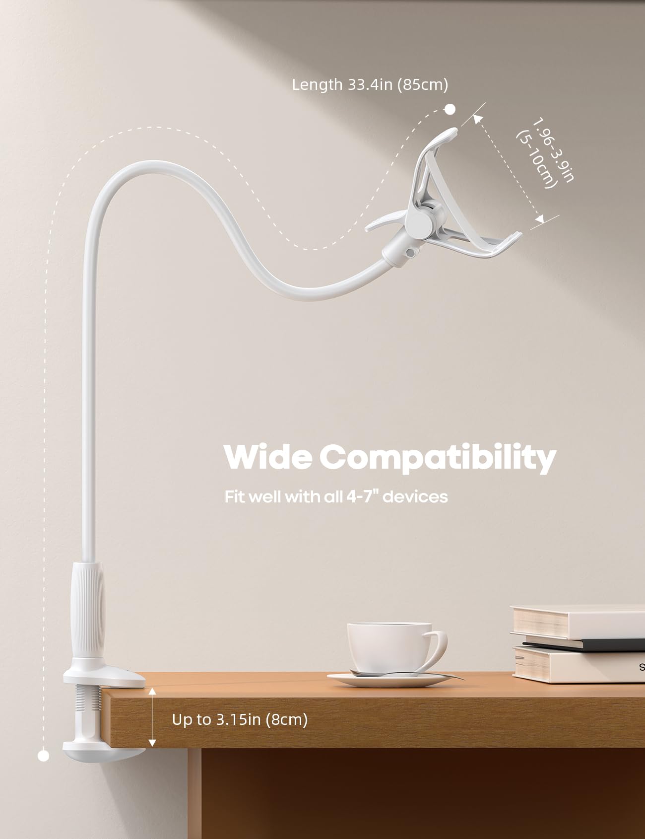 Lamicall Gooseneck Bed Phone Holder - Universal Flexible Lazy Arm for Desk, 360 Overhead Phone Mount Clip for iPhone 16 15 14 13 12 11 Series, Xs XR, Samsung, 4-7”