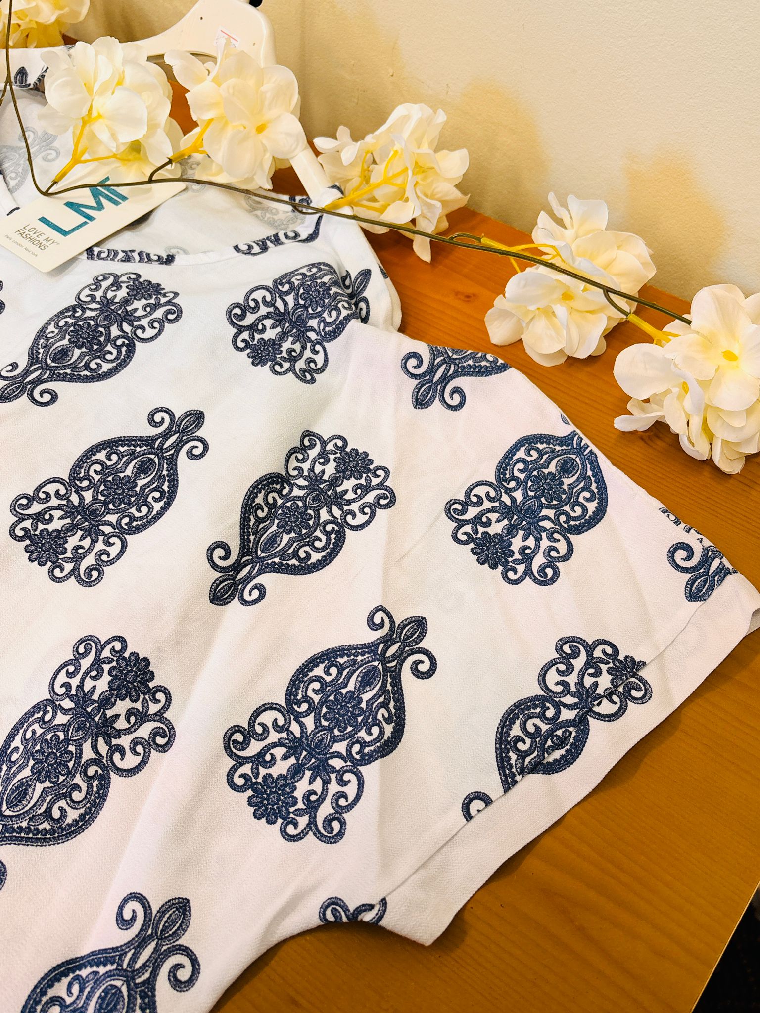 Ornate Bloom Cotton Co-ord Half Sleeve Set with Pant