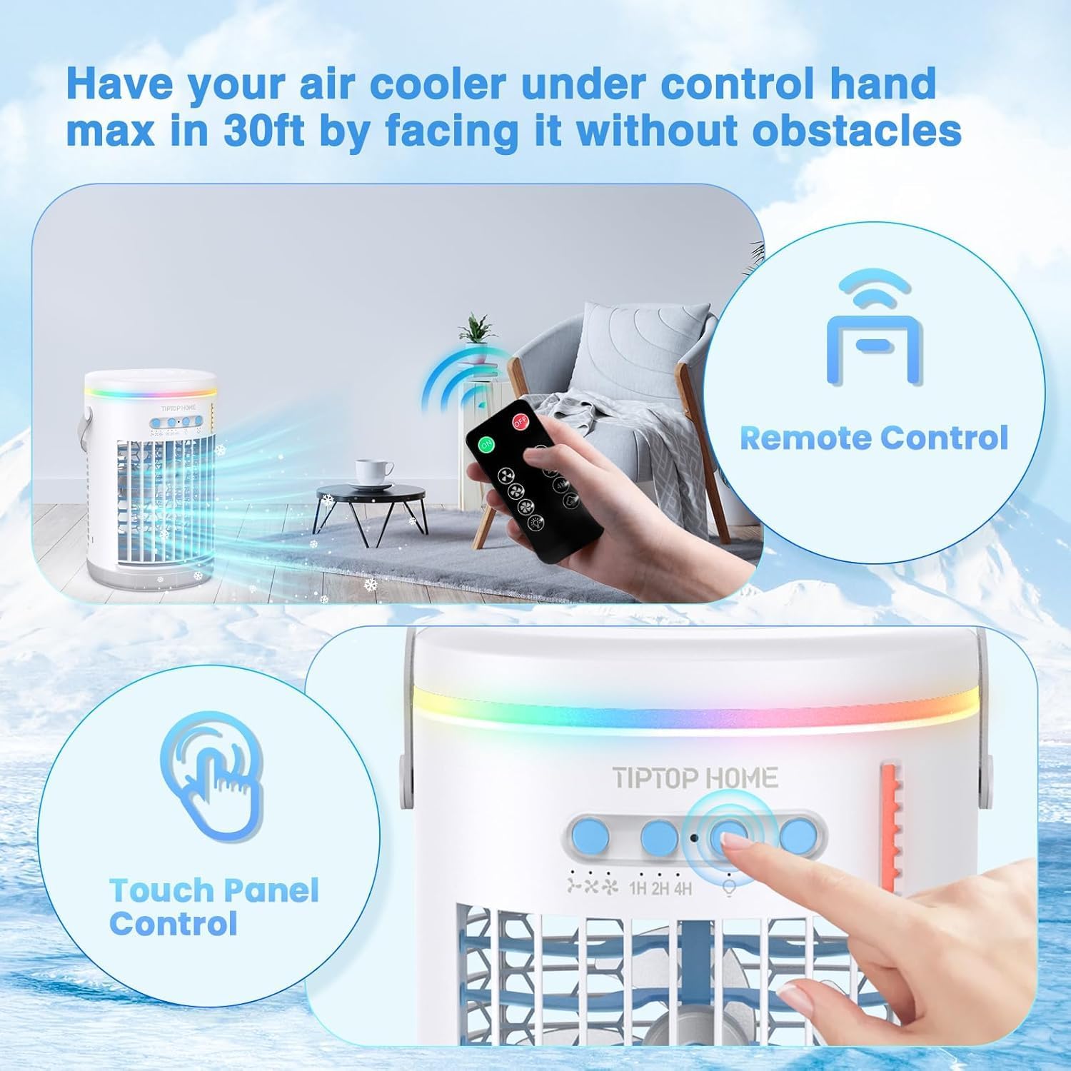 - 1400ml Water Tank - Large water tank allows the mini air cooler to cool for a long time. You don't need to add water every 30 minutes.