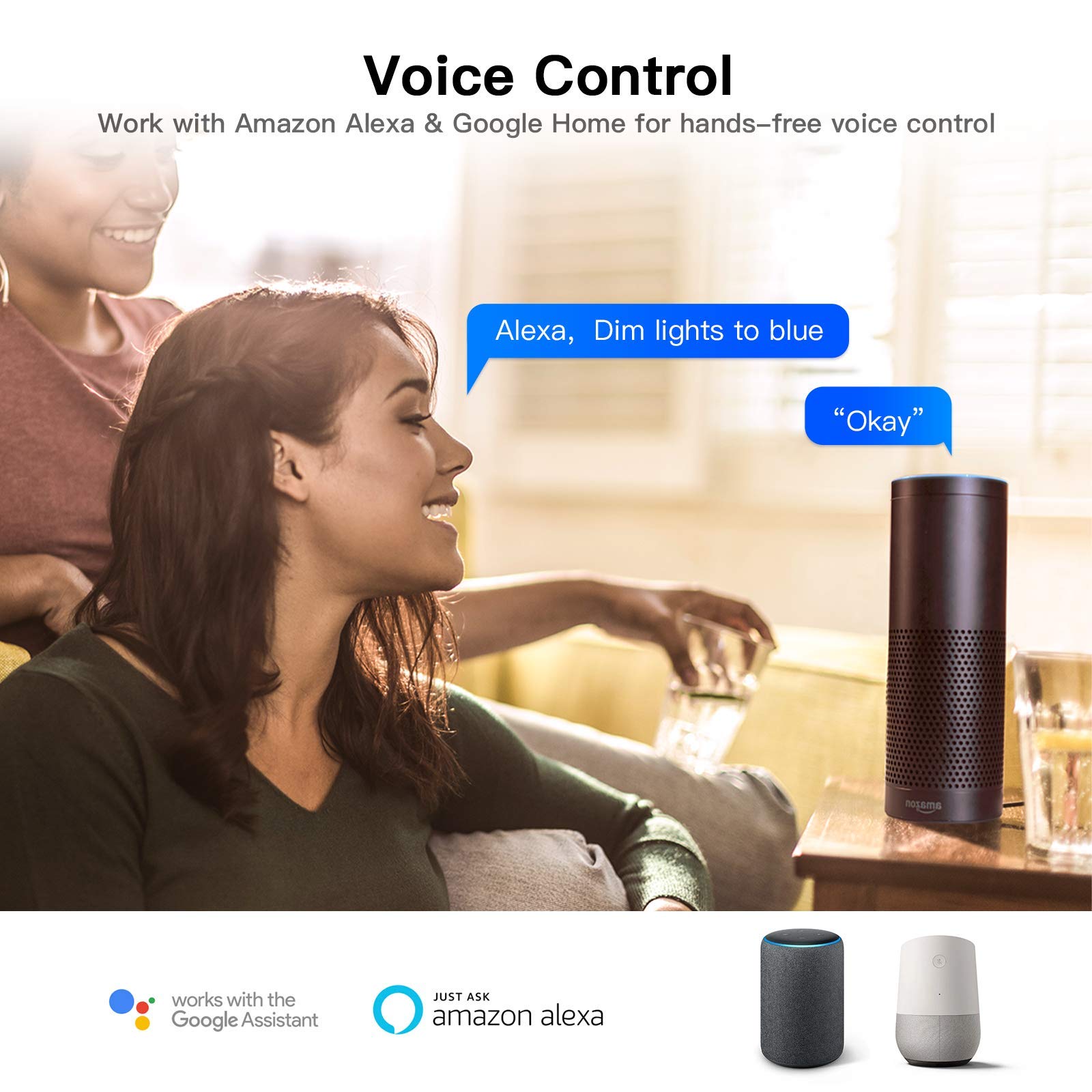 Voice Control: Works with Amazon Alexa and Google Assistant for hands-free control of devices. You can name each plug and control them via voice commands.