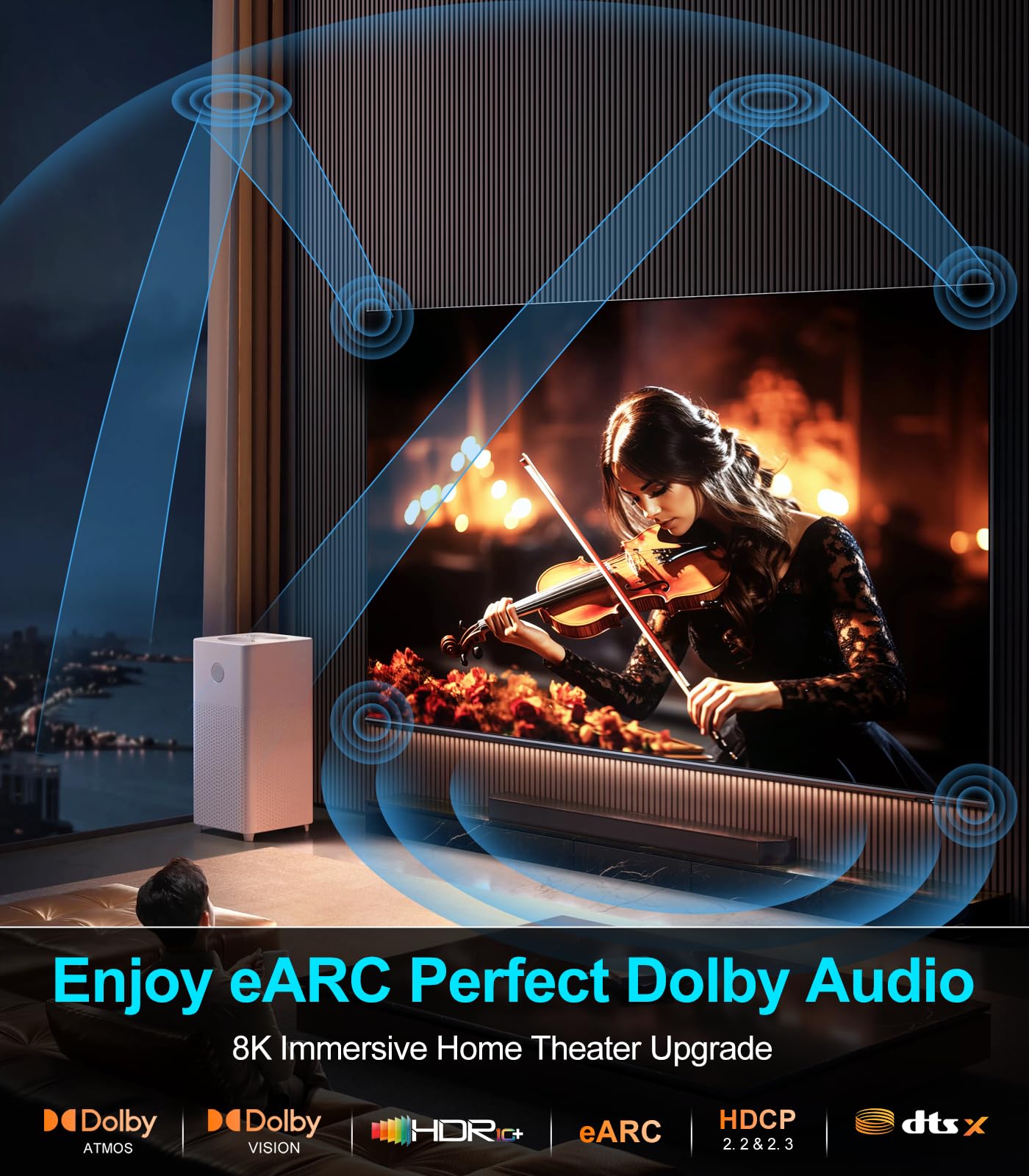 - ✅ Immersive Audio: eARC & support for Dolby Atmos and DTS:X deliver rich, cinematic surround sound.