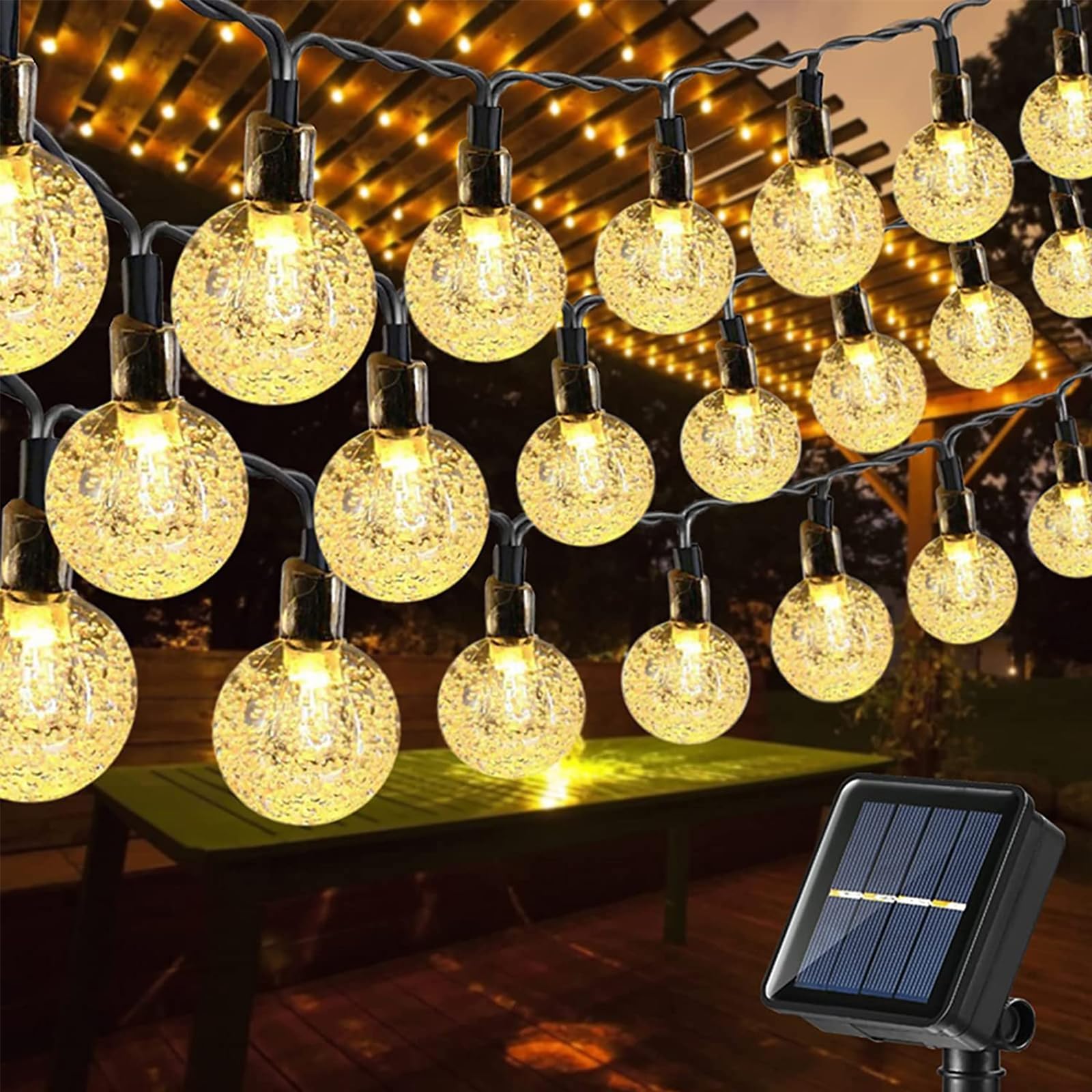 - 【Solar Garden Lights Outdoor】60 high quality LED crystal ball string lights and 36ft cable, enough length for your to decor your home and garden, making it excellent for garden, patios, yard, home, parties, wedding etc. During the festival, it can create a sweet, romantic and warm atmosphere.