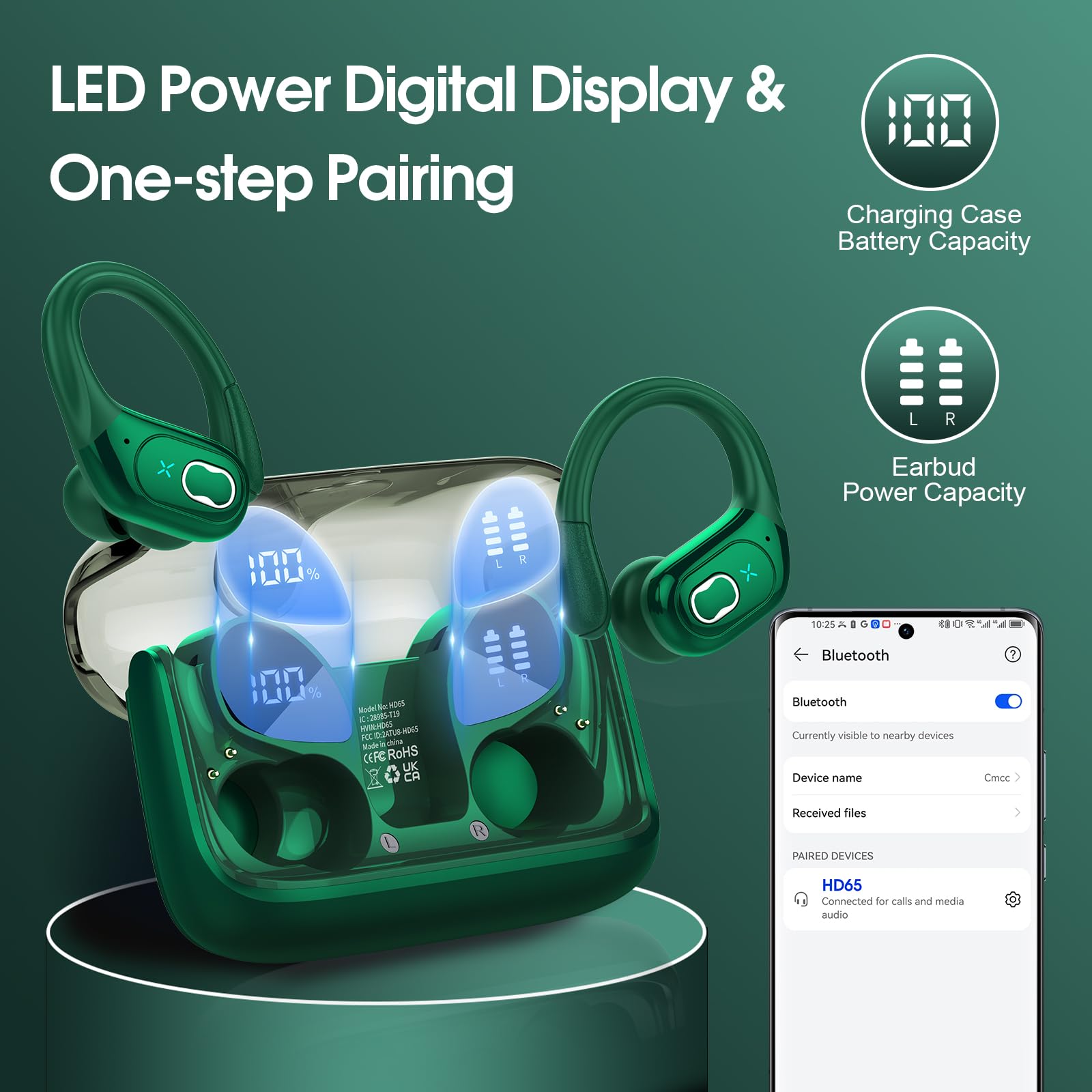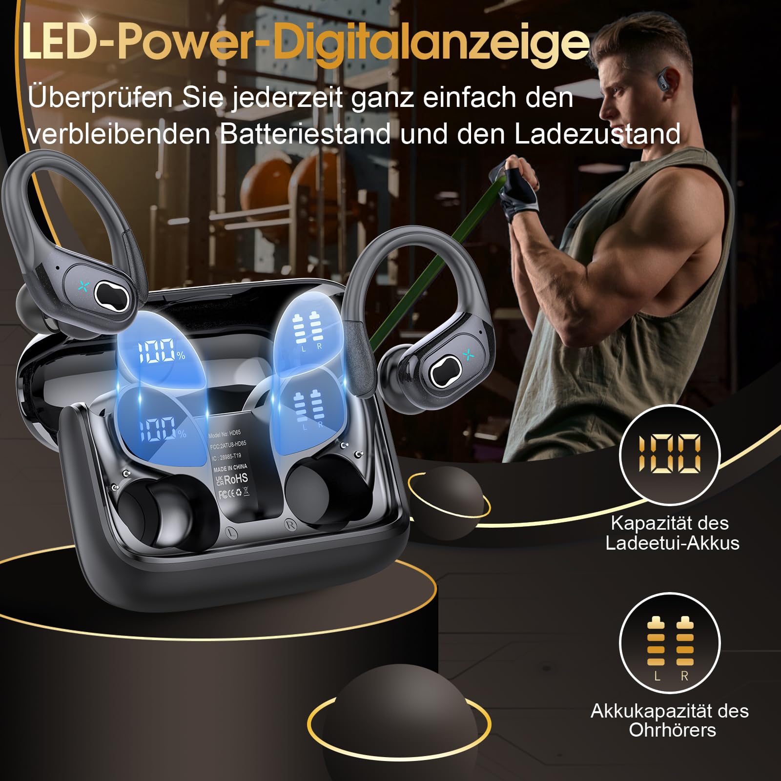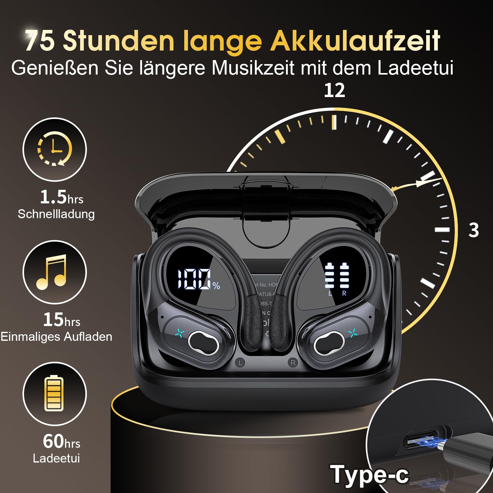 STECEi Wireless Earbuds β 75H Bluetooth 5.4 Earphones with ENC Noise Cancelling Mics, HiFi Stereo Sound, Earhooks, IP7 Waterproof for Running, Gym & Sports (Black)