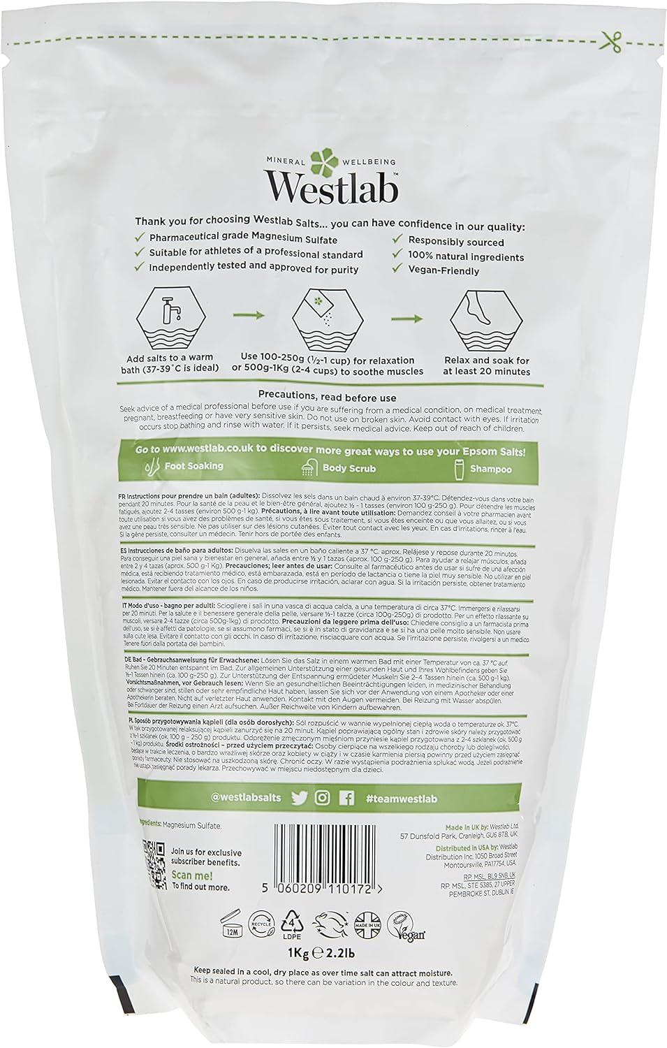 - Additives: Epsom Salt, 100% Natural